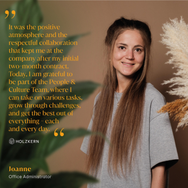Dynamik & Entwicklung: Als schnell wachsendes Unternehmen bietet Holzkern viele Möglichkeiten zur Mitgestaltung und Weiterentwicklung – auch abteilungsübergreifend.