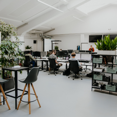 All employees are free to choose their workplace location within Germany. At our Cologne site, we have a modern office in Lindenthal. We work in an open office concept within a former factory hall. Meeting rooms like the "Jungle" and the "Savannah" facilitate hybrid working. Additionally, there are quiet spaces for focused work or confidential conversations. On sunny days, our outdoor terrace is a popular spot.