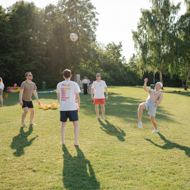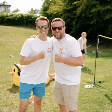Darum feiern wir auch gern mal zwischendurch: Ob beim Sommerfest, bei kleinen Office-Partys oder einer Runde Sport nach Feierabend – wir lachen viel, arbeiten hart und haben zusammen Spaß.