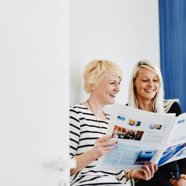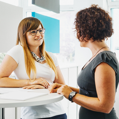 Und falls du dich fragst, was du zum Bewerbungsgespräch anziehen sollst – bei uns gilt die Devise Business Casual. Wenn du dich in einem Anzug oder Kostüm wohlfühlst, zieh dies gerne an. Hemd und Sakko ohne Krawatte reichen aber genauso aus wie Bluse und Rock bzw. Hose.