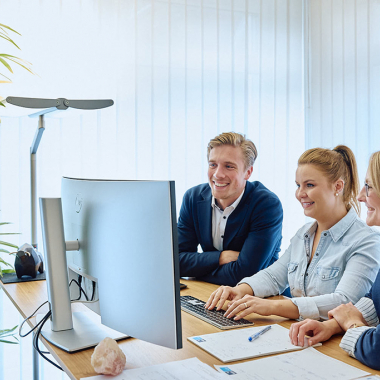 Höhenverstellbare Tische an allen Arbeitsplätzen. Aufgrund der perfekten Umsetzung der Digitalisierung bei WSS - für alle Mitarbeiter einen dritten Bildschirm.